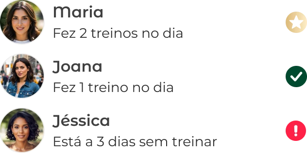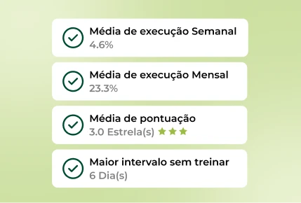 Veja quantas vezes ela treinou, se completou os treinos e o percentual de execução.
